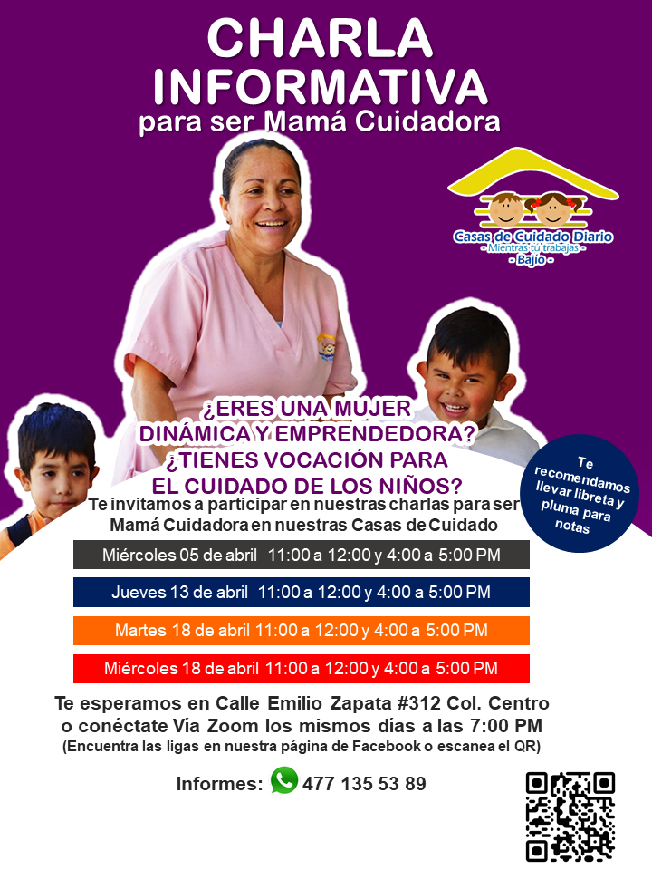 Te invitamos a participar en nuestras charlas para ser Mamá Cuidadora en nuestras Casas de Cuidado: